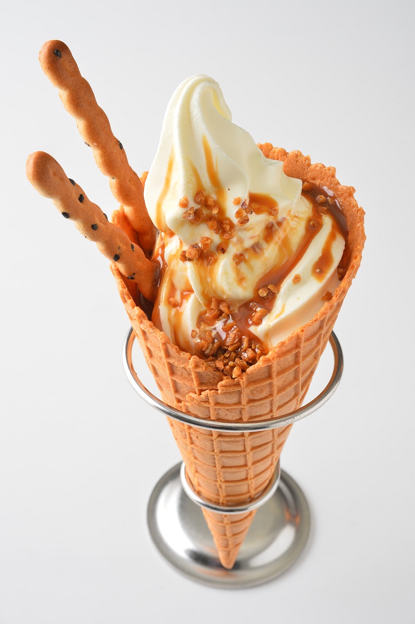 ご当地バーガーで有名なラッキーピエロ。 ハンバーガーだけでなくソフトクリームも名物。 キャラメル好きに大人気。濃厚なソフトクリームをキャラメルソースとナッツで食べる!